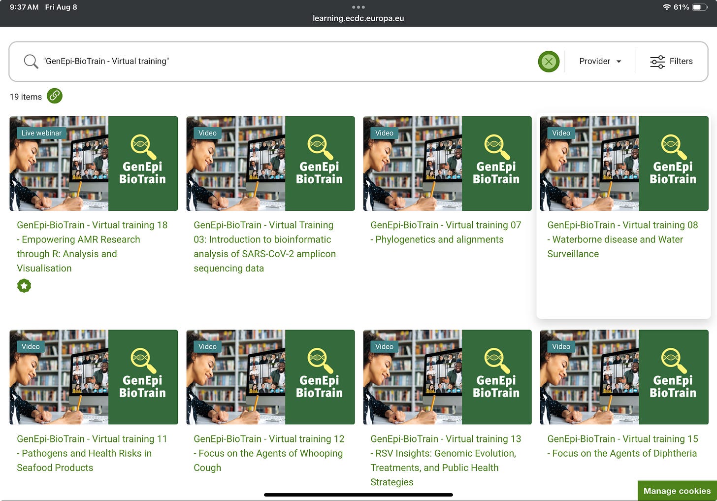 Another great resource is from the European Centre for Disease Prevention and Control. They have a four year bioinformatics and genomic epidemiology training programme that runs 2023-2026. Courses are available for live enrollment, or recordings can be viewed of past courses. You’ll need to sign up for a free ECDC training account, and then you can access and enroll here. There is a great mix of foundational trainings as well as pathogen-specific trainings.