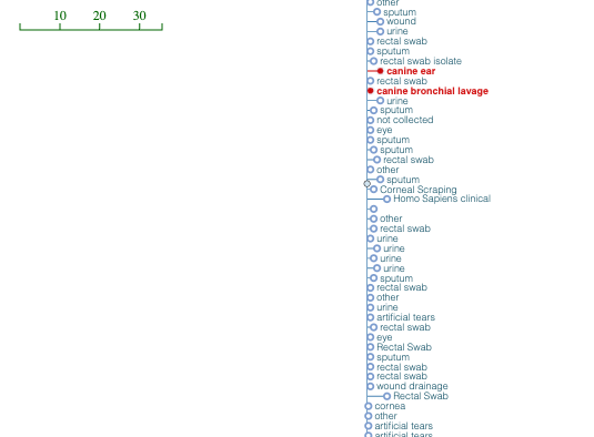 While the outbreak investigation was ongoing in the human sphere, the New Jersey Department of Health was notified of CRPA isolates from two different dogs treated at a single veterinary hospital in New Jersey. Their story is outlined in a recent publication by Price et al. (2024)3. Clinical specimens from the dogs were sent to the clinical microbiology laboratory of the PennVet Diagnostic Laboratory, University of Pennsylvania (Philadelphia, PA, USA) where they underwent culture, AST, and sequencing. Sequences were uploaded to NCBI and included in the NCBI Pathogen Detection (see this article for more about NCBI PDP)